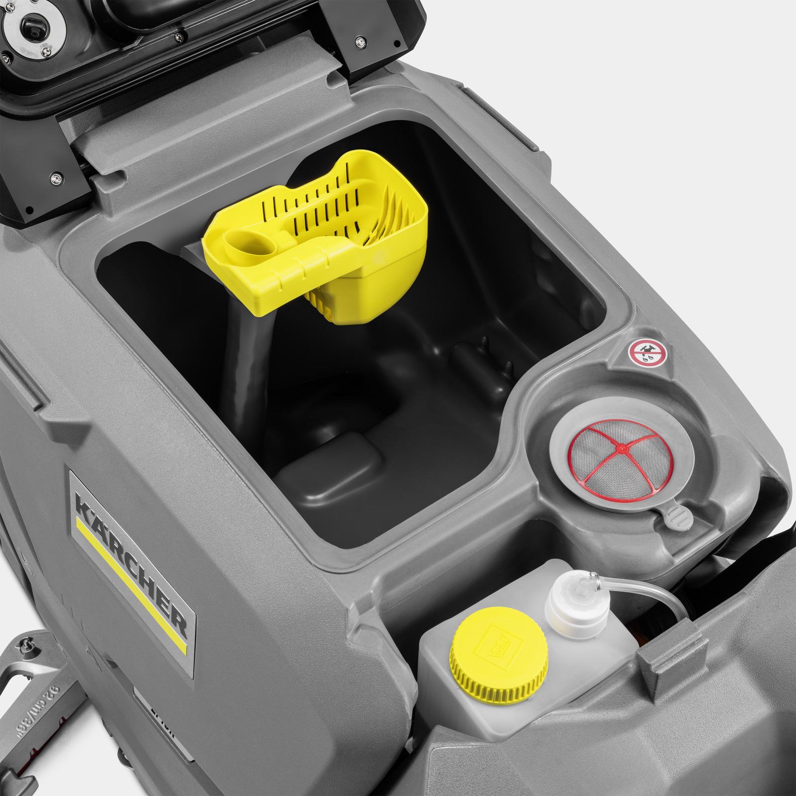 Dankzij het compacte walk-behind ontwerp en de wielen met tractie behoudt u goed overzicht en kunt u moeiteloos sturen, wat de bediening vergemakkelijkt en de fysieke belasting verlaagt. Het DOSE-systeem doseert reinigingsmiddel precies en zuinig, zodat u nooit te veel gebruikt. Auto-Rinse reinigt de vuilwatertank contactloos en Auto-Fill maakt het vullen comfortabel en sneller. Via de Machine Connect-app leest u instellingen en informatie eenvoudig af en past u ze aan waar nodig.