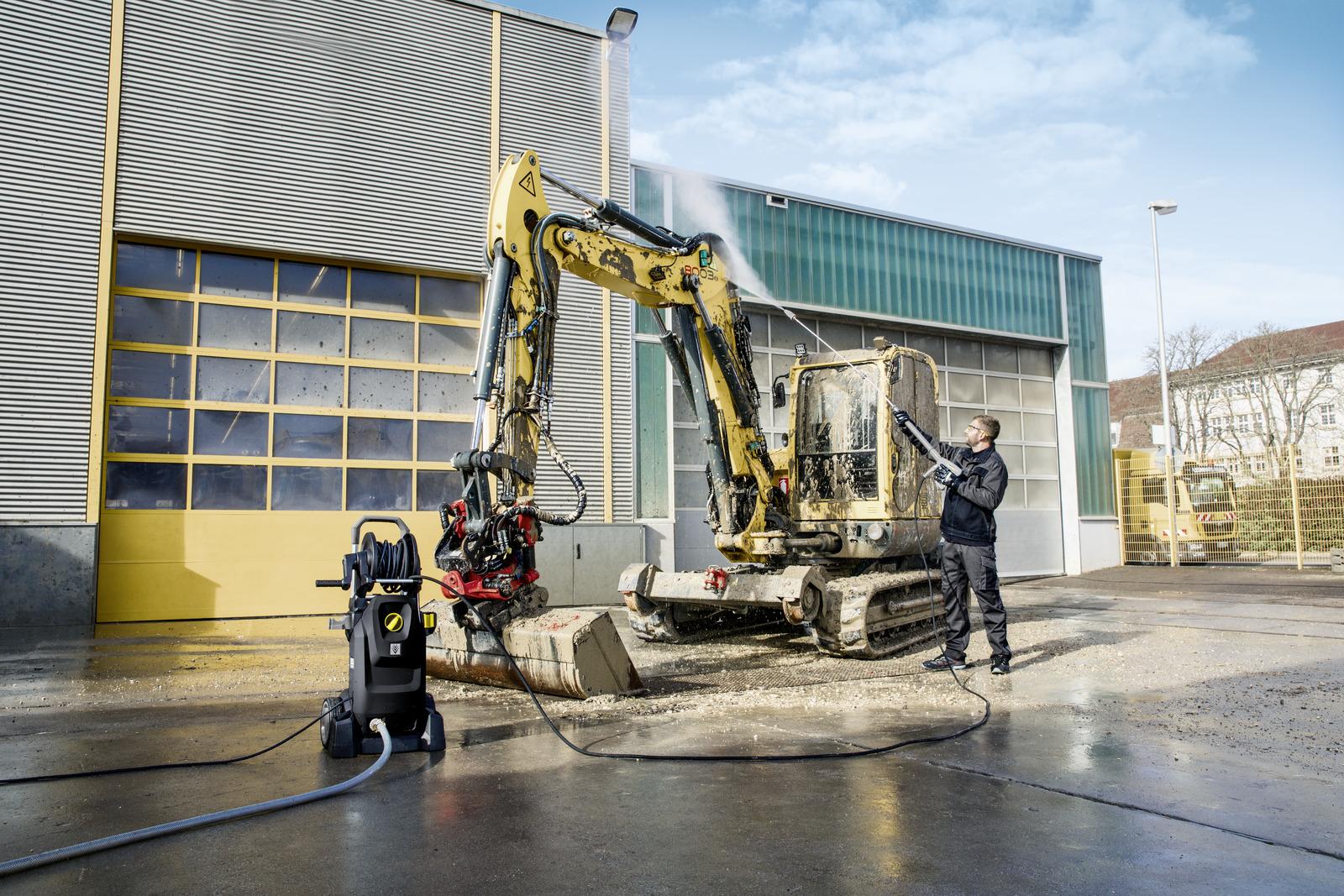 90 jaar Kärcher: De onverwarmde HD 7/16-4 MX Plus Anniversary Edition hogedrukreiniger in zwart met 4-polige draaistroommotor met laag toerental overtuigt door zijn uitgebreide uitrusting, servicevriendelijke design en hoge flexibiliteit. Een geïntegreerde slanghaspel vereenvoudigt het gebruik van de hogedrukslang, terwijl de nieuw ontwikkelde, robuuste axiale 3-zuigerpomp met messing cilinderkop de reinigingsprestaties en energie-efficiëntie met maar liefst 20 procent verhoogt en een lange levensduur garandeert. De hoogwaardige componenten worden beschermd door de automatische drukontlasting en een groot waterfilter. Innovatieve oplossingen zorgen voor vermoeidheidsvrij werken en tijdbesparende montage en demontage: Terwijl het EASY!Force hogedrukpistool gebruik maakt van de terugslagkracht van de hogedrukstraal om de houdkracht tot nul te reduceren, zorgen de EASY!Lock snelsluitingen voor een 5 keer snellere hantering in vergelijking met conventionele schroefverbindingen zonder afbreuk te doen aan de robuustheid en duurzaamheid. Accessoires kunnen direct op het apparaat worden opgeborgen. Inbegrepen bij de levering van de jubileumeditie: een rotormondstuk, een straalbuis van 840mm en een FR Classic oppervlaktereiniger.