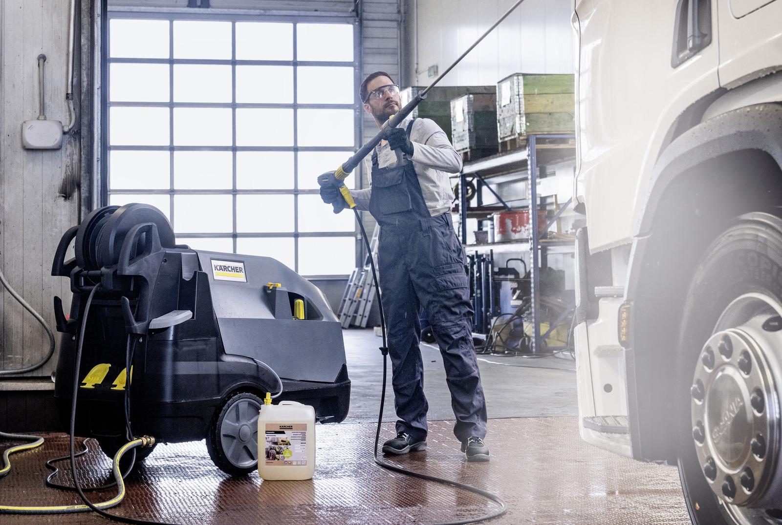 A versatile product for removing oils, greases and organic matter with high-pressure cleaners – Natural Active Cleaner RM 82N from Kärcher. The alkaline cleaner, which features on the FiBL’s list of resources for organic production in Germany, is made from more than 99 per cent natural ingredients. The surfactants in the formula originate from wheat bran, maize and other natural resources, and are completely biodegradable. Whether in (organic) agriculture or in the transport industry, in the food industry, on construction sites or in workshops – anywhere where machines, vehicles, tractors, boxes, barrels, cold storage rooms, floors and even tarpaulins or conveyor belts need to be cleaned, this sustainable and natural active cleaner is up to the task with its maximum cleaning power. It is free of silicones, fragrances and dyes, easy to separate and extremely gentle on materials – even on metals and painted surfaces thanks to the non-corrosive formula. Plus, PressurePro Natural Active Cleaner, alkaline RM 82N delivers effective cleaning power even at low water temperatures and can also be used with hot water high-pressure cleaners at up to 90 °C.