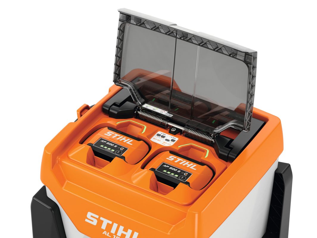 Andere voordelen van de STIHL AL 1802 MO zijn, naast de korte laadtijd, de actieve koeling van de accu’s tijdens het laadproces, het veilig transport van de accu’s en de mogelijkheid om tijdens het rijden te laden. Niet te vergeten is de verkorting van de dagelijkse voorbereidingstijd, omdat accu’s en lader tot de volgende werkdag in het voertuig kunnen blijven.
