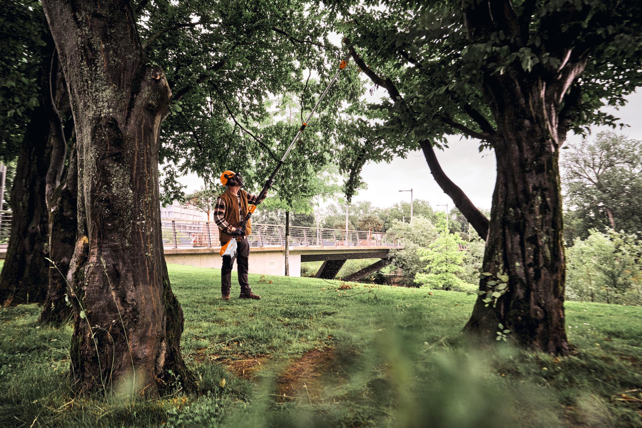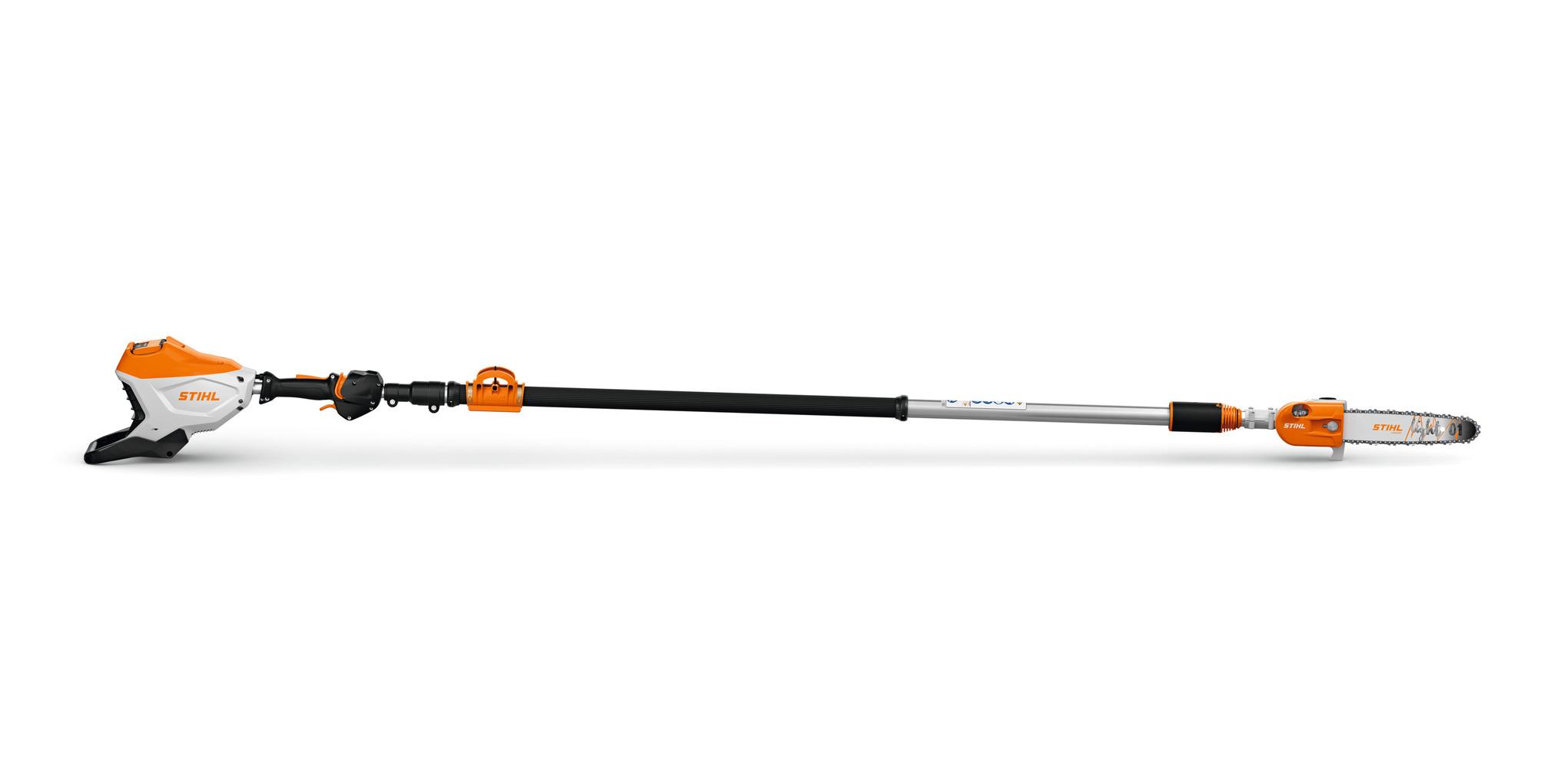 De telescopische steel is uitschuifbaar tot 405 cm, waardoor je takken diep in de boomkruin gemakkelijk bereikt. De totale lengte ligt tussen 285 en 405 cm, wat zorgt voor een bereik van circa 5 meter. Je kunt kiezen tussen STIHL kettingen van 3/8 inch of 1/4 inch, zodat je kunt kiezen voor krachtige, snelle snoei of juist heel nette, zuivere sneden.