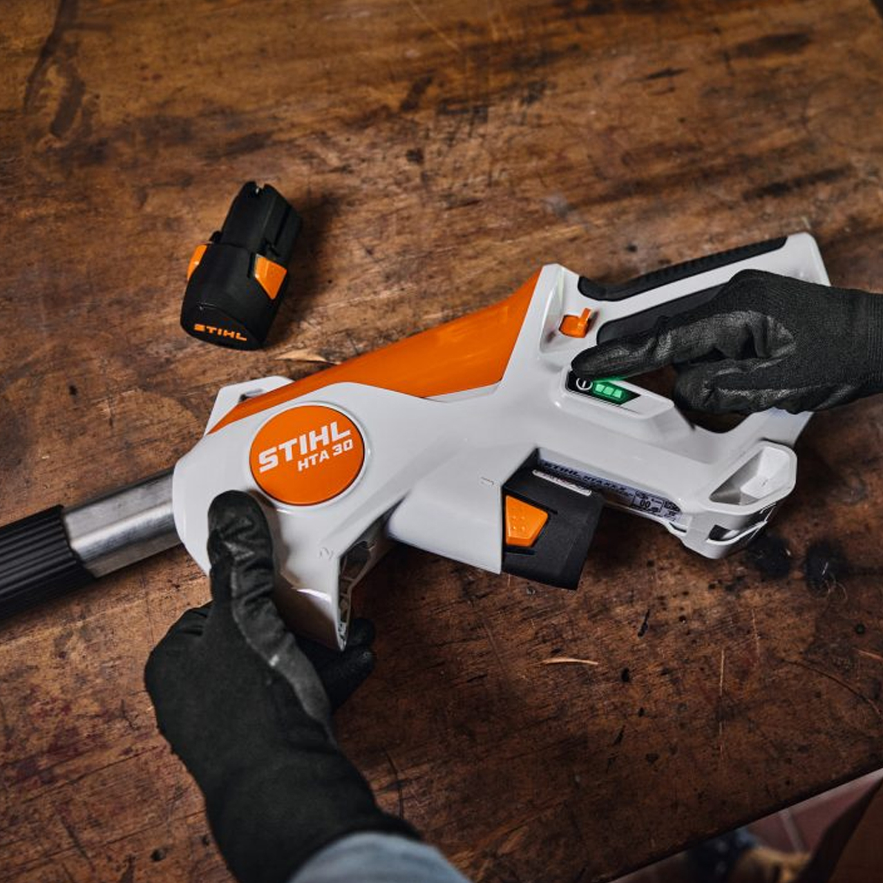 De STIHL HTA 30 werkt op 2 STIHL AS2 accu’s.